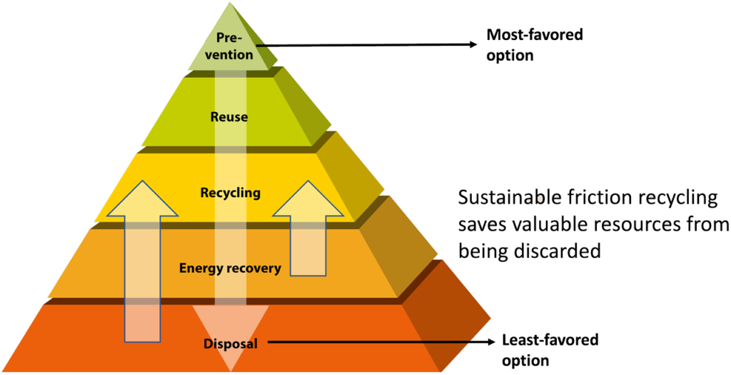 Friction material recycling saves money, reduces CO2 emissions (CO2eq), and enables green marketing.